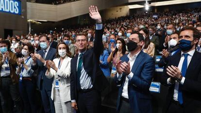 Alberto Núñez Feijóo ha sido proclamado este sábado presidente del Partido Popular con el respaldo del 98,35% de los asistentes al congreso extraordinario que se cierra hoy en Sevilla. El también presidente de la Xunta de Galicia ha recibido 2.619 votos a favor de los 2.663 válidos emitidos este fin de semana. No ha tenido ni un voto en contra, y solo 44 se han emitido en blanco. Los populares entierran así la etapa política de Pablo Casado, quien este viernes por la tarde anunció que dejará su escaño en el Congreso y cualquier responsabilidad en la formación que ha presidido desde julio de 2018 hasta hoy. El discurso de Feijóo ha cerrado el congreso al que los populares se vieron abocados hace un mes al partirse en dos el partido, cuando Isabel Díaz Ayuso acusó a Casado de espiarla y este señaló un posible tráfico de influencias de la presidenta madrileña para dar a dedo a su hermano un contrato público. Hoy, Casado y Ayuso se han besado las mejillas al encontrarse en el Palacio de Congresos de Sevilla, en presencia de Alfonso Fernández Mañueco, a punto de cerrar su coalición para gobernar con Vox en Castilla y León.