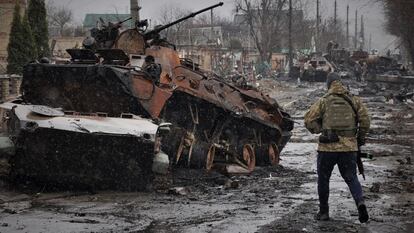 La guerra está abriendo nuevas heridas económicas y psicológicas entre los españoles, a añadir a las de la pandemia, y ha provocado un vuelco en el tradicional pacifismo de la opinión pública. Más de la mitad de la población admite que ha reducido diversos gastos y una cuarta parte confiesa problemas de estrés. La reacción del Gobierno y de los países occidentales frente a Vladímir Putin tiene un amplio respaldo. Un 57%, por ejemplo, aplaude el envío de armas a Ucrania, según el barómetro de abril de 40dB. para EL PAÍS y la Cadena Ser. Hay un dato que condensa el drástico giro que el conflicto ha operado en la opinión pública: los partidarios de aumentar el gasto militar, muy minoritarios hasta ahora, alcanzan el 47%.