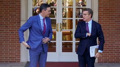 En un tono “muy cordial”, según Alberto Núñez Feijóo, el presidente del Gobierno y el del PP iniciaron este jueves el deshielo después de casi cuatro años de puentes rotos entre el jefe del Ejecutivo y el líder de la oposición. Feijóo asegura que pone “el contador a cero” en su confianza en la palabra de Pedro Sánchez. Con esa disposición, ambos han puesto las bases para acordar algunas cuestiones pendientes, como la renovación del Consejo General del Poder Judicial. El gran desencuentro entre ambos es la economía y, por ende, el paquete de medidas para hacer frente a las consecuencias de la guerra en Ucrania. Estos son los acuerdos y desacuerdos que salen de la reunión de tres horas entre Pedro Sánchez y Alberto Núñez Feijóo en La Moncloa: