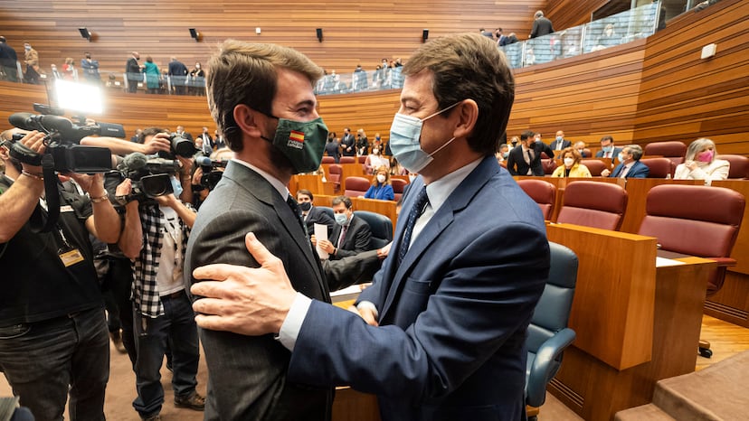El jefe de la Junta, que convocó elecciones para desprenderse de Ciudadanos y ha terminado el ciclo electoral junto a Vox, citó durante sus réplicas a los partidos de la oposición al novelista vallisoletano Miguel Delibes y la frase con la que comienza El Camino: “Las cosas podrían haber sucedido de cualquier manera y, sin embargo, sucedieron así”. Las elecciones anticipadas del 13 de febrero abren desde ayer una alianza entre el PP y Vox, que entra en la Junta con la vicepresidencia, la presidencia de las Cortes, tres consejerías y un reto compartido con sus socios: gestionar una etapa de entendimiento desde la rivalidad por la derecha.