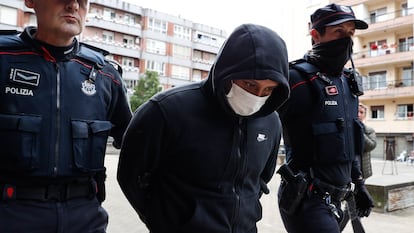 También este viernes, la Ertzaintza ha registrado una vivienda situada en el número 6 de la calle Pinar de Irun en presencia del joven detenido. Pasadas las 16.05 de la tarde, el arrestado, custodiado por agentes de la policía autonómica, ha abandonado el lugar, cubierto con una capucha negra y portando mascarilla, informa Efe.