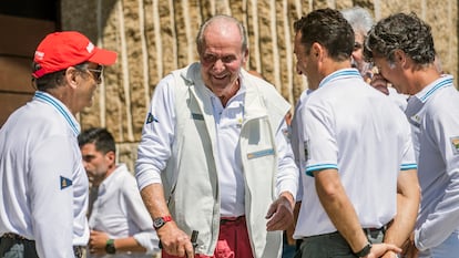 El rey emérito ha salido de la casa de Pedro Campos, su anfitrión, sobre las 12.20, tocado con la gorra roja con la que suele patronear el Bribón, y que dice que le da suerte. Diez minutos después, ha llegado al Real Club Náutico de Sanxenxo, donde están los pantalanes de embarque, en medio de una enorme expectación. Fuentes cercanas al anterior monarca han asegurado que este pretende hacer “un saludo extenso” a la prensa.