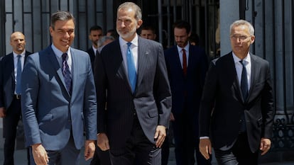 La política militar vuelve a generar divisiones dentro del Gobierno de coalición. Unidas Podemos se ha desmarcado este lunes del acto por el 40º aniversario del ingreso de España en la OTAN, celebrado en el Teatro Real de Madrid y presidido por el rey Felipe VI en presencia del secretario general de la Alianza Atlántica, Jens Stoltenberg, una nutrida representación del ala socialista del Gobierno y los embajadores de los 30 países aliados. Aunque como miembro del Consejo de Seguridad Nacional (CSN), la vicepresidenta segunda, Yolanda Díaz, era oficialmente la única ministra de UP invitada a la ceremonia, Podemos se ha mostrado contrario a la celebración. A través del coportavoz del partido Javier Sánchez Serna, la formación ha vuelto a criticar la cumbre de la OTAN, que se celebra el 29 y 30 de junio en la capital, ha rechazado un aumento del gasto en Defensa y ha abogado de nuevo por una conferencia alternativa que defienda “la paz” y la “diplomacia” como vía para poner fin a la guerra en Ucrania.