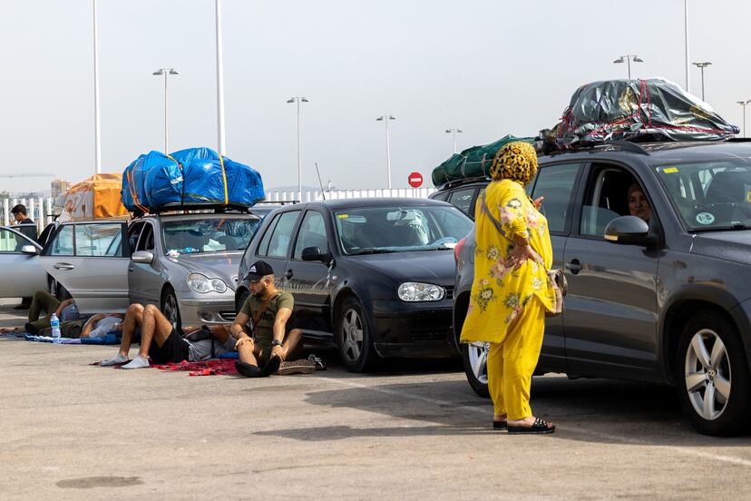 Los puertos de Algeciras y Tarifa —ambos gestionados por la misma autoridad— condensan el 70% de los movimientos de pasajeros de cada OPE, aunque este pasado jueves por la mañana costaba imaginarlo ante la calma chicha de solo unas decenas de coches atestados de maletas y bultos atados con maestría en sus bacas. “Me gusta decir a mi gente que esto es solo la calma antes del tsunami que se nos viene”, bromea Esther Mendoza, inspectora jefe del Puesto Fronterizo del puerto algecireño. Nada fuera de lo habitual en el mayor operativo europeo de movimiento de viajeros. Los primeros días de junio —oficialmente arrancó el miércoles pasado— son solo un espejismo de lo que viene detrás. “En julio, cuando los niños cojan las vacaciones, esto será muy diferente”, apunta el trabajador Francisco Orihuela, mientras canaliza los coches que están a punto de embarcar, como el de Gámez y Lamaayzy.