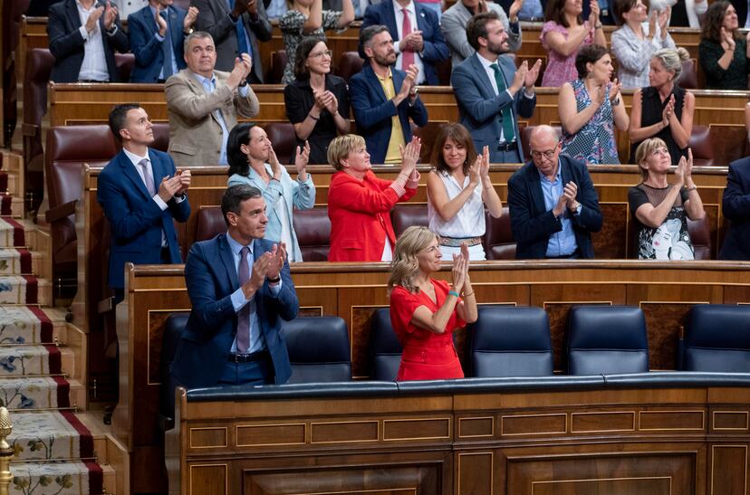 El presidente, como es obligado, aguantó en su escaño casi los tres días largos que duró el debate, con pequeñas interrupciones para dormir algo. No se acercó a los periodistas en ningún instante para comentar nada. Solo el veterano Miguel Ángel Aguilar logró pararle cuando accedía a su coche unos segundos para intercambiar unas anotaciones sobre un libro de Santos Juliá y las distancias recorridas entre aquel PSOE del no a la OTAN y el actual, de cuya reciente cumbre de Madrid Sánchez salió también reluciente en muchas fotos. El presidente le pidió el ejemplar pero el periodista se lo negó porque lo tenía muy subrayado y anotado. Los ministros del sector socialista que sí se aparecieron por los pocos patios y pasillos que aún quedan sin acotar para el trabajo de los periodistas en el Congreso en esta fase postpandemia lo que transmitían era ilusión, alivio, sensación de que Sánchez y ellos estaban de vuelta, con opciones de dar la pelea a las encuestas y de que hay partido ante la próxima e inminente campaña.