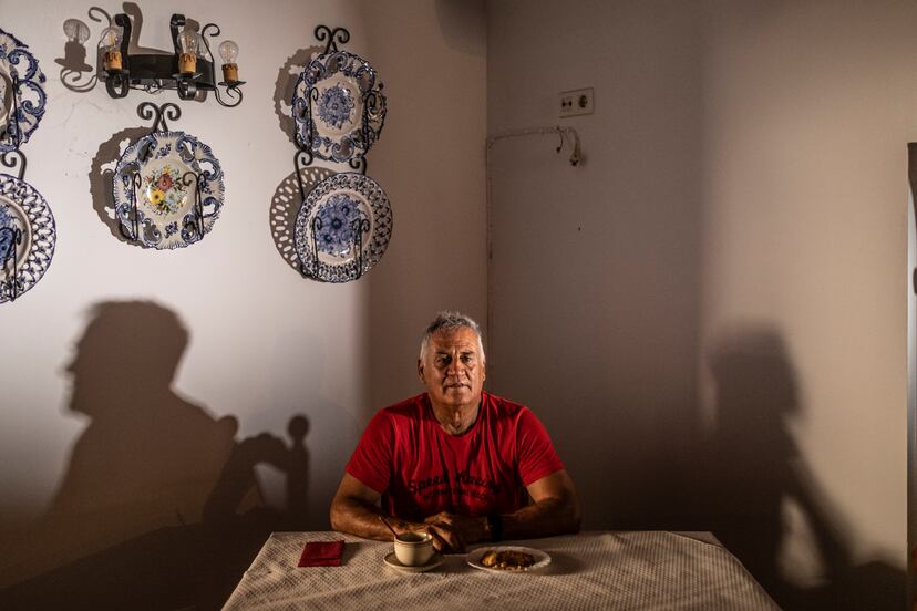 A pesar de haber estado 12 horas sofocado por el fuego en el monte, González llega puntual a la cita en el único bar del pueblo abierto a primera hora de la mañana. Aunque la noche anterior advertía de que podía surgir una nueva misión en el trabajo en cualquier momento. “Si no hay ningún imprevisto...”, contestaba por teléfono ante el alboroto provocado por el desastre medioambiental que le mantiene alerta. “Nunca volveré a ver esto como estaba antes”, lamenta el extremeño, que vive con su madre, de 92 años, que cada vez que él sale por la puerta “se pone nerviosa”.