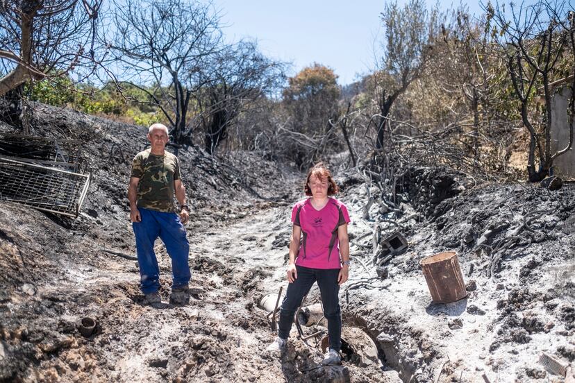 “Estamos a destajo. No nos metas prisa”, le dice a su compañero. Francisco García, de 52 años, le pide ayuda para descargar un congelador de una furgoneta que viene de la sede central de los equipos de extinción. García lamenta que el fuego haya devastado el legado familiar. “Esas tierras las podrían haber heredado mis hijos”, se queja mientras intenta contener las lágrimas.