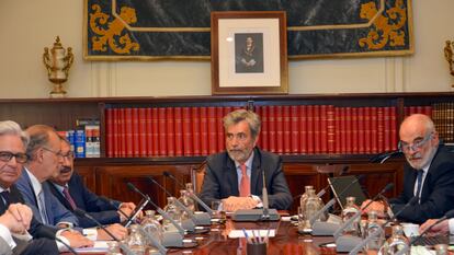 El presidente del Consejo General del Poder Judicial (CGPJ), Carlos Lesmes, ya ha puesto fecha al pleno del órgano para debatir el nombramiento de dos magistrados del Tribunal Constitucional: será el próximo 8 de septiembre, según ha anunciado a los vocales el propio Lesmes este jueves. La fecha está dentro del plazo de tres meses que ha marcado al Consejo la reforma legal impulsada por el Gobierno, que devuelve al actual CGPJ las competencias para designar a dos magistrados del Constitucional, al tiempo que mantiene el veto para el resto de nombramientos discrecionales hasta que el órgano de gobierno de los jueces se renueve (el mandato expiró en diciembre de 2018). La celebración del pleno, no obstante, no garantiza la elección de los dos magistrados, ya que esta requiere una mayoría de tres quintos, por lo que Lesmes ha instado a los miembros del órgano a consensuar de aquí al 8 de septiembre dos candidatos capaces de reunir el mínimo de 12 votos necesarios, según un comunicado difundido por el Consejo.