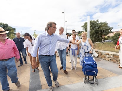 En primera fila le escuchaban los cinco presidentes autonómicos del PP: Juan Manuel Moreno Bonilla (Andalucía), Isabel Díaz Ayuso (Madrid), Alfonso Fernández Mañueco (Castilla y León), Alfonso Rueda (Galicia) y Fernando López Miras (Murcia). No faltaba ninguno. El PP de los barones que descabalgó a Pablo Casado se ha unido ahora con el objetivo de recuperar el Gobierno, cuatro años después de la moción de censura que desalojó a la derecha de forma abrupta del poder. Solo la presidenta de la Comunidad de Madrid hace algunos movimientos que la retratan como verso suelto del grupo, aunque sin las tensiones con Feijóo que la enfrentaron con Casado. La baronesa madrileña ejerce de representante del alma más liberal y de la estrategia de confrontación total con la izquierda. Su reverso lo representa el “califa andaluz”, como bautizó Feijóo al presidente de Andalucía, ganador de las elecciones andaluzas de junio con mayoría absoluta y una estrategia de moderación. Uno y otro se han bañado en selfis con los militantes del PP en Cotobade.