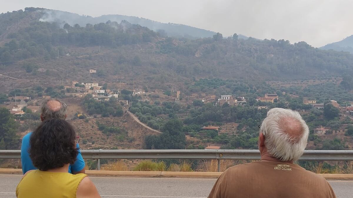 Acebuches es un pequeño núcleo de 19 habitantes que se encuentra unos cientos de metros antes de llegar a Ízbor. La carretera que permite acceder a ambos está enfrente del monte quemado y ahí han pasado la noche Juan Sánchez y Plácido Hidalgo. Ambos tienen viviendas y fincas en Acebuches y los dos han pasado “una noche bastante mala” viendo cómo el fuego se ha acercado hasta a 80 metros del pequeño núcleo habitado, que tiene nombre de olivo salvaje. Hidalgo teme por una segunda residencia que, señala con el dedo, se halla claramente en la zona quemada. Ambos insisten en que lo que se divisa desde donde se encuentran es “toda su vida”. Aunque aún no hay recuento oficial, dan por hecho que más de un cortijo ha sido arrasado en la sierra durante la noche.