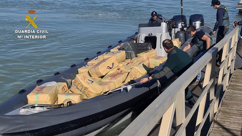 En la investigación, iniciada en diciembre del año pasado, los agentes han realizado hasta 37 registros en las localidades gaditanas de Sanlúcar, Chipiona, Trebujena y en la aldea de El Rocío (Almonte, Huelva). En todas esas entradas, la Guardia Civil ha conseguido recuperar 14.380 kilos de hachís, una embarcación semirrígida trimotor, garrafas de combustible, documentación y teléfonos móviles.