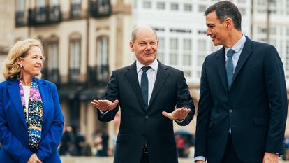Los dos principales líderes socialdemócratas de Europa, Olaf Scholz y Pedro Sánchez, tienen problemas similares: desgastados en las encuestas, se enfrentan al auge de la derecha y la ultraderecha y a un importante malestar social por las consecuencias de la guerra de Ucrania y la inflación desbocada. Ambos, con una estrecha relación política, dejaron claro el miércoles en A Coruña, en una rueda de prensa conjunta tras la XXV Cumbre hispano-alemana, que comparten la receta que piensan utilizar para intentar frenar ese descontento social e impedir que se vuelque a la ultraderecha, como acaba de suceder en Italia o incluso en Suecia. Lo que hay que hacer, han explicado ambos a su manera, desde una perspectiva socialdemócrata, es cuidar a los ciudadanos de clase media trabajadora, mejorar sus salarios, garantizarles un futuro, asegurarse de que sienten que están protegidos, que sus hijos y nietos tendrán trabajo y vivirán como ellos aunque no tengan una formación universitaria. Las dos respuestas de Scholz y Sánchez han dejado claro esa sintonía en uno de los grandes debates políticos que recorre Europa después de las elecciones italianas: ¿cómo frenar la ola de ultraderecha y populismo que cabalga sobre la crisis económica?