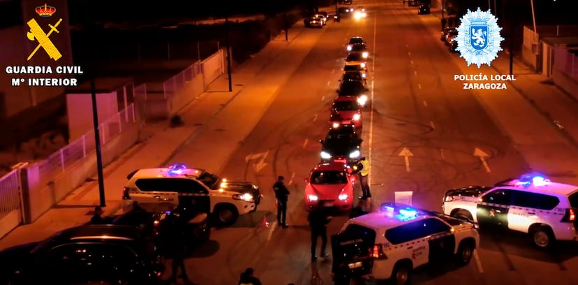 Más de 100 vehículos se han visto implicados en una operación contra las carreras ilegales en el barrio de la Cartuja de Zaragoza. La Guardia Civil y la Policía Local de Zaragoza han llevado a cabo un dispositivo para desmantelar competiciones de velocidad y otras infracciones contra la seguridad vial, como circular con motocicletas sobre una rueda, hacer trompos o derrapes, que se habían convertido en habituales en un polígono de la capital aragonesa. La investigación, que ha durado más de tres meses, ha culminado con un gran dispositivo policial en que se han interpuesto 61 denuncias en una noche y se ha inmovilizado un vehículo. También se ha desmantelado un taller ilegal de vehículos.