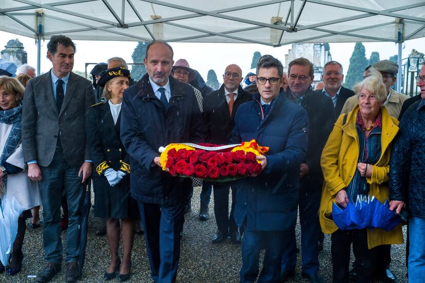 El ministro de la Presidencia y de Memoria Democrática, Félix Bolaños, ha visitado este viernes en Montauban (Francia) la tumba de Manuel Azaña en el 82º aniversario de la muerte del que fuera presidente de la II República —“quizá el mejor político de la historia de España”, ha dicho Bolaños—. También ha depositado unas flores en la lápida, a solo unos metros, del médico del presidente republicano, Felipe Gómez-Pallete, quien se quitó la vida en 1940, a los 36 años, por los motivos que explicaba en una carta enviada al embajador de México diez días antes: “Le había jurado a don Manuel Azaña inyectarlo de muerte cuando le viera en peligro de caer en poder de Franco. Ahora que veo cercano ese peligro, me falta el valor para hacerlo. No queriendo violar este compromiso, me aplico yo mismo esa inyección para adelantarme a su viaje”. Los franquistas persiguieron hasta el final de sus días a Azaña, que llegó a Francia ya muy enfermo. Gómez-Pallete, que había sido liberado de un campo de concentración, no se separó de su lado hasta que se quitó la vida el 13 de octubre de 1940. Azaña murió unas semanas después, la noche del 3 de noviembre, en un hotel. Fue la legación mexicana la que sufragó los gastos del entierro. El episodio fue recordado por el presidente del Gobierno, Pedro Sánchez, el pasado lunes durante el primer homenaje de Estado a las víctimas del golpe de Estado de 1936 y la dictadura franquista.