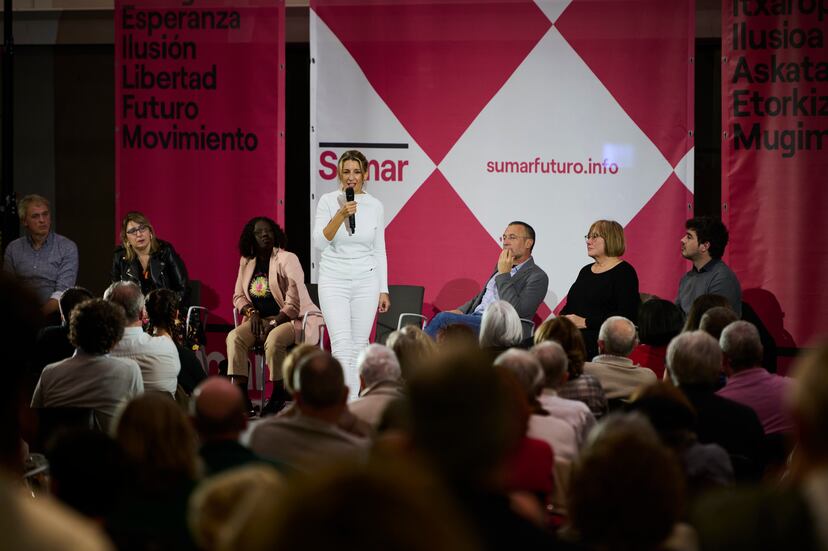 La vicepresidenta advierte en Navarra de que su proyecto “no es el complemento de nadie” y afianza su compromiso para liderarlo de cara a las generales: “Estoy dispuesta”