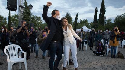 Díaz se volcó en la campaña madrileña en apoyo de su amigo. En el mitin de cierre, el 2 de mayo en Vicálvaro, Iglesias señaló a su sucesora y se dirigió a la militancia: “Os quiero pedir que la cuidéis. No solo cuando haga las cosas bien. Si alguna vez se equivoca, ese día es cuando tenéis que cuidarla más que nunca”.
