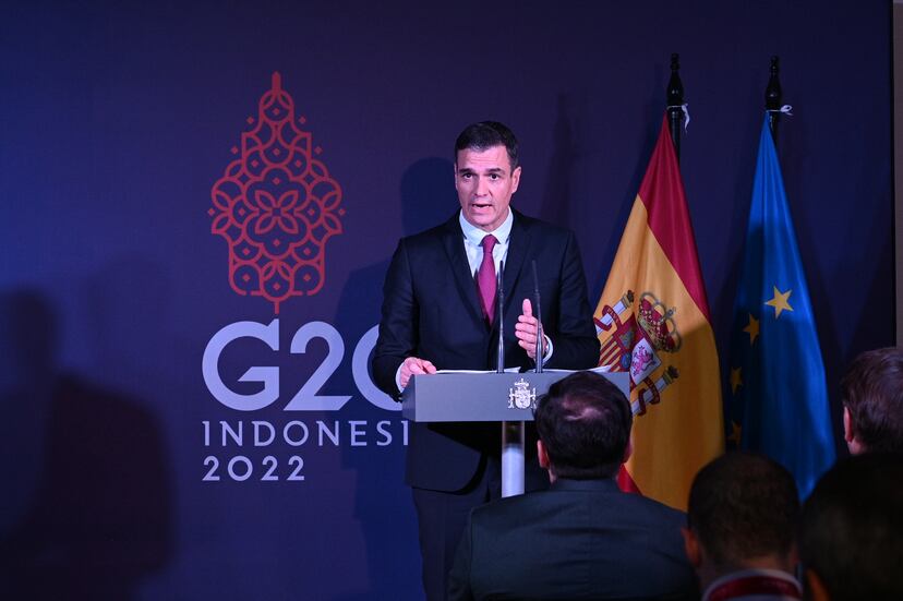 El presidente del Gobierno ha comparecido ante los medios al término de la cumbre del G-20, que se ha celebrado en Bali y que ha estado marcada por la invasión lanzada por el presidente ruso, Vladímir Putin, en Ucrania y sus consecuencias. Sánchez ha explicado que la voz de España ha estado presente en este foro para reivindicar el fin de la guerra, solucionar la crisis alimentaria y avanzar en todos los asuntos por los que España es reconocida en el mundo, entre los que ha citado “la apuesta por el ecologismo, el feminismo, la igualdad y la solidaridad”. “Es por esto por lo que España alza su voz en el G-20″, ha manifestado.
