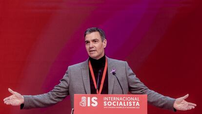 Fundada en 1951, la Internacional Socialista (IS) agrupa a 132 partidos socialistas, socialdemócratas y liberales que ha tenido como presidentes a iconos de la socialdemocracia como Willy Brandt y António Guterres. Sobre el papel, se trata de una organización que debería tener una enorme capacidad de influencia en los organismos internacionales. Sin embargo, la IS languidece desde hace años con unos dirigentes que se habían eternizado en sus cargos durante décadas. Su hasta ahora presidente, Yorgos Papandreu, fue nombrado en 2006. Un chileno, Luis Ayala, era el secretario general desde 1989, por más que los estatutos establecen, como en el caso del presidente, que solo pueden ser elegidos para un máximo de ocho años (dos mandatos). La progresiva decadencia de la IS la resumió como nadie Alfonso Guerra hace unas semanas: “Dije hace 30 años que la Internacional Socialista se estaba convirtiendo en una agencia de viajes”, afirmó, desdeñando la intención de Pedro Sánchez de liderar la organización para renovarla y darle una dimensión global. El presidente del Gobierno y secretario general del PSOE, que ha sido elegido este viernes el primer presidente español de la IS, ha asumido el desafío de vigorizar una organización durante lustros adormecida con un propósito: que “sea una gran plataforma ideológica del movimiento socialista internacional”. “¡Hemos vuelto y estamos más vivos que nunca, somos más necesarios que nunca!”, ha enfatizado Sánchez antes de su elección en el 26º Congreso de la Internacional Socialista por aclamación: era el único candidato y no se han llegado a contar los votos ante la evidencia del repaldo que ha obtenido. La ghanesa Benedicta Lasi ha sido designada nueva secretaria general en el cónclave que se celebra hasta el domingo en Madrid.