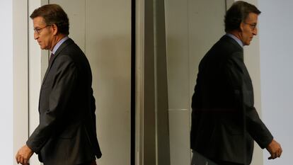 El presidente del Partido Popular, Alberto Núñez Feijóo, en una declaración institucional en Madrid. Foto: JAVIER LIZÓN (EFE) | Vídeo: EPV