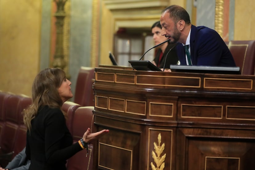 La diputada de Vox por Málaga Patricia Rueda aprovechó una iniciativa que en principio no parecía entrañar la menor polémica, una propuesta del PSOE sobre el apoyo a la candidatura española de Málaga para albergar la Exposición Internacional 2027. Rueda acusó al Gobierno de castigar “a las regiones leales a España” y al tiempo “premiar a filoetarras, golpistas y separatistas”. El presidente en funciones le pidió que retirara esa alusión, Rueda se negó, forcejeó dialécticamente con Gómez de Celis, ambos llegaron incluso a tutearse y el diputado socialista que ejercía de nuevo de árbitro, como la semana pasada con los insultos machistas a la ministra de Igualdad, Irene Montero, le retiró la palabra. Todos los diputados presentes de Vox aplaudieron a Rueda, abandonaron la sala y salieron al pasillo. Allí, su portavoz, Iván Espinosa de los Monteros, asesorado por Ignacio Gil Lázaro, el miembro de Vox en la Mesa, denunció el comportamiento “sectario” de Gómez de Celis. Unos minutos más tarde fue el propio el presidente de Vox, Santiago Abascal, quien compareció para enfatizar que con ese tipo de actitudes “el Gobierno asalta las instituciones” y culmina “el proceso deconstituyente de España”.