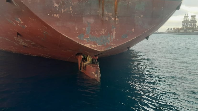 El pasado lunes, Salvamento Marítimo rescató en el Puerto de La Luz de Las Palmas de Gran Canaria a los tres varones que habían logrado la proeza de sobrevivir a la travesía a la intemperie en un pequeño espacio situado en la parte superior de la pala del timón, bajo la popa, a la intemperie y a merced de cualquier golpe de mar, a escaso medio metro del mar. Los polizones hacían turnos para dormir, de forma que mientras dos descansaban, el tercero vigilaba para evitar caer al agua desde el minúsculo espacio, según relataron a su llegada y relató el jefe autonómico del equipo de respuesta inmediata a los inmigrantes de la Cruz Roja, José Antonio Rodríguez.