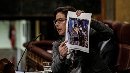 Las andanadas contra Marlaska llegaron en tromba en cuanto terminó su intervención inicial, que se alargó 36 minutos, y en la que no se pudo sentir arropado por los demás componentes del Gobierno, porque ni el presidente ni ningún otro ministro se quedaron en su bancada para acompañarle. La portavoz del PP, Ana Vázquez, ya de por sí vehemente, no se reservó ninguna descalificación. Fue la primera que pidió la dimisión o el cese el titular de Interior, que luego refrendaron casi todos los partidos menos Unidas Podemos, socio de la coalición, y casi también la única formación que no avanzó si estaría dispuesta a demandar la constitución de una comisión de investigación sobre aquellos hechos.