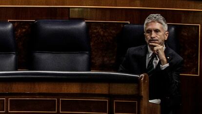 El titular de Interior padeció un auténtico vapuleo político. Se subió a la tribuna y repitió, casi punto por punto, lo que ya había dicho en el hemiciclo el 21 de septiembre; lo que ha respondido ante cinco preguntas orales en la Cámara baja y el Senado, y lo que ha remachado en hasta 32 ocasiones en estos meses en distintas entrevistas y declaraciones a los medios de comunicación, según el cómputo que él facilitó para presumir de “transparencia”. Pero sus explicaciones sobre que los “hechos trágicos de carácter vital” de aquel día se registraron fuera de España, que la respuesta de las fuerzas de seguridad fue “proporcionada” y que todo lo que se está diciendo, escribiendo y observando en vídeos e investigaciones periodísticas independientes son “conjeturas, especulaciones e insinuaciones” no persuadieron a nadie. Ni el presidente, Pedro Sánchez, ni ninguno de sus compañeros de Gabinete lo arroparon durante su larga exposición.