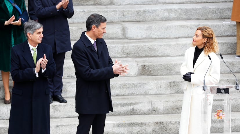 Desde que se formó el primer Gobierno de coalición del actual periodo democrático en España, la celebración del aniversario de la Ley Fundamental en el Congreso ya ha adquirido una cierta rutina. Los principales partidos se acusan entre sí de faltar al espíritu de la Constitución. La derecha culpa al Gobierno por sus pactos con los independentistas, y el Gobierno culpa a la derecha por mantener bloqueado el Consejo General del Poder Judicial. En la calle —esto ya empieza a ser también tradición— una docena de personas, situadas a centenares de metros de distancia de las autoridades por el cordón de seguridad, reclaman a gritos la dimisión de Sánchez y hasta que ingrese en prisión. Los nacionalistas periféricos se quedan en sus casas y esta vez hizo lo propio Vox, el partido que se pasa el día blandiendo la Constitución contra todos. Y en el medio, Batet llama a la concordia.
