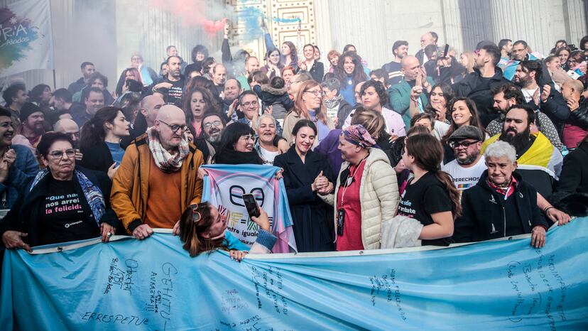 Un intenso olor a pólvora penetró en el patio del Congreso al final del último pleno del año. Los diputados salían corriendo para volver a casa por Navidad, a primera hora de la tarde de este jueves, y se preguntaban extrañados qué estaba sucediendo. Con lo turbulenta que se ha vuelto la vida parlamentaria, cualquiera sabía. Pero no había motivo para la alarma. Alguien había soltado unos petardos en la plaza de las Cortes, donde un centenar de miembros de los colectivos de transexuales celebraban eufóricos la aprobación de su nueva ley arropados por toda la cúpula del Ministerio de Igualdad. La manoseada ley trans, esa de la que algún momento se llegó a temer que pusiera en riesgo el Gobierno de coalición, había salido adelante y además con una mayoría rotunda: 188 votos a favor y solo 150 en contra. Hasta la disidencia de una diputada socialista, la exvicepresidenta Carmen Calvo, que se abstuvo contra las directrices de su grupo, quedaba en anécdota.