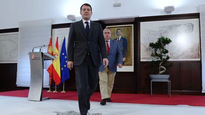 El presidente de Castilla y León, Alfonso Fernández Mañueco, ha negado esta mañana que su Gobierno vaya a adoptar ningún protocolo de actuación con las mujeres embarazadas que “pueda suponer coacciones directas” a aquellas que hayan decidido abortar, por lo que “no se obligará a nada a los médicos, ni se obligará a las mujeres embarazadas a nada”; es decir, ni deberán oír el latido fetal ni someterse a una ecografía anticipada en 4D, como dijo el jueves su vicepresidente y aliado de Vox, Juan García-Gallardo. “Ni hemos contemplado ofrecer medidas coercitivas a las mujeres embarazadas, ni vamos a aceptar que el Gobierno utilice a las mujeres para hacer política”, ha dicho en una comparecencia institucional en Valladolid, en lo que supone una desautorización de los planes que el jueves anunció el vicepresidente regional y a una corrección a su consejero de Sanidad, Alejandro Vázquez (PP). Mañueco ha dicho que los médicos no harán ninguna oferta previa a la mujer y que los servicios de latido y ecografía solo se ofrecerán si la paciente lo solicita expresamente, y no antes. “Tengo claro que alterar este orden puede derivar en coacciones directas o indirectas a las mujeres embarazadas y, por tanto, la Junta nos las va a promover ni a amparar”, ha dicho.