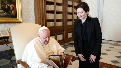 La presidenta de la Comunidad de Madrid, acompañada por el alcalde y la delegada del Gobierno, se reunió este sábado con el papa Francisco en el Vaticano