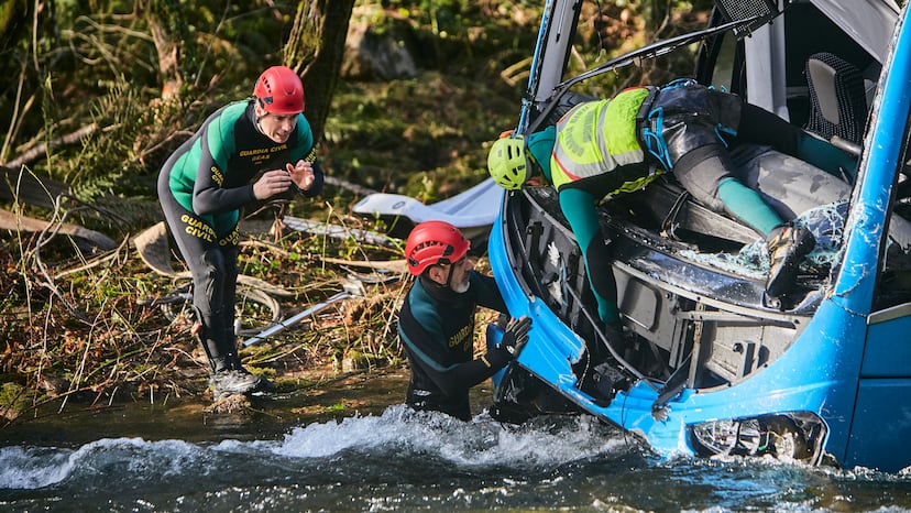 El testimonio de los dos supervivientes ha permitido reconstruir los momentos previos al accidente y arrojar alguna luz a los expertos en siniestros del Subsector de Tráfico de Pontevedra encargados de la investigación. La superviviente María del Rosario González Rocha, residente en Ponteareas, cumplió 49 años en el hospital Montecelo de Pontevedra donde estuvo ingresada varios días por múltiples traumatismos. Fue la primera en contar cómo el autobús se precipitó al río y lo hizo tres días después del suceso. En una declaración escueta desde su cama del hospital, la mujer relató el 27 de diciembre a la Policía Judicial que estaba sentada en un asiento situado justo detrás del conductor con el que iba hablando. “De repente, el chófer gritó ‘¡no lo controlo, no lo controlo!’. Le pregunté ‘¿qué pasa?’ y dio unos volantazos. El autobús se movía de un lado a otro hasta caer al río”, recoge el atestado de la Guardia Civil.