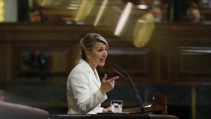 Mucho antes de que Yolanda Díaz anunciara que el domingo 2 de abril presentará su candidatura a la presidencia del Gobierno, en La Moncloa ya estaba abierto el debate sobre qué miembros del Gobierno iban a intervenir en la moción de censura de Vox. Desde el primer momento no hubo dudas de que la vicepresidenta segunda y principal rostro institucional de Unidas Podemos iba a subir a la tribuna. No se trataba de una decisión inédita: dos años atrás, en octubre de 2020, en la misma situación, el entonces vicepresidente Pablo Iglesias intervino después de Pedro Sánchez para responder a Santiago Abascal.
