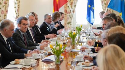 Alberto Núñez Feijóo puso en bandeja a Vox el juego de palabras al elegir dónde iba a pasar la mañana del martes mientras el Congreso debatía la moción de censura presentada por los ultras. El líder del PP se fue a la Embajada de Suecia en Madrid mientras trataba de ponerse de perfil ante la iniciativa parlamentaria del partido de Santiago Abascal. Sus competidores en la derecha no tardaron en reprocharle que, mientras su líder defendía a una censura contra el presidente del Gobierno, Pedro Sánchez, Feijóo estaba “haciéndose el sueco e hinchándose a canapés” en la legación diplomática del país escandinavo. El político gallego quería pasar desapercibido y guardó silencio durante toda la jornada, pero su nombre resonó una y otra vez en el Parlamento, sobre todo citado por el líder de Vox, que puso las cartas sobre la mesa. Ante los intentos del PP de desmarcarse de la moción de censura y de la extrema derecha, Abascal recordó a Feijóo que lo necesitará como socio, según el escenario que dibujan todas las encuestas. “Entendámonos mañana para ofrecer a los españoles una alternativa sólida”, exhortó el líder de los ultras al silente presidente del PP.