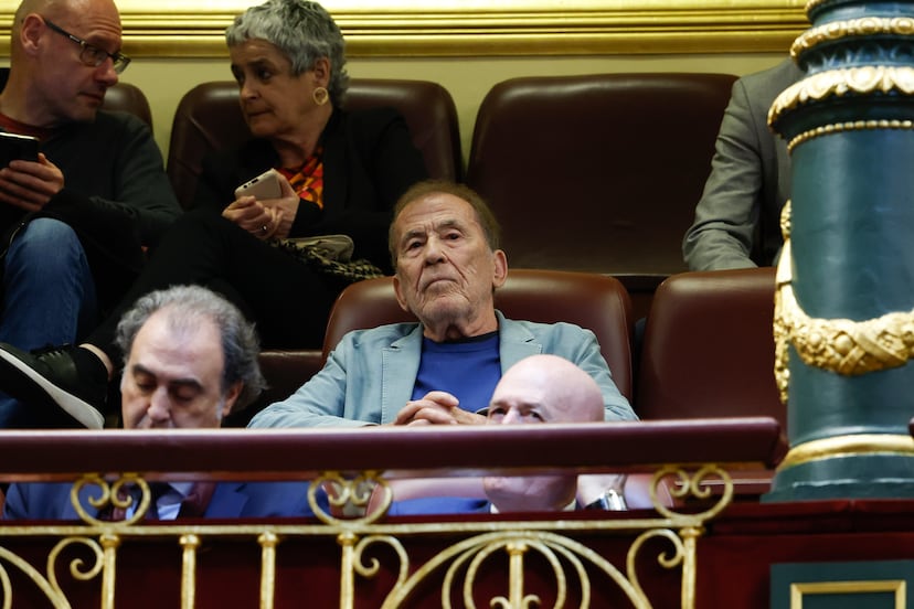 Una mujer se descalza en la tribuna de invitados del Congreso de los Diputados y estira las piernas hasta los riñones del hombre que se sienta en la fila inferior. Sus compañeros cuchichean y se miran unos a otros, extrañados, pero nadie dice nada. Ella es Carmen Prieto-Castro, esposa de Ramón Tamames, candidato alternativo en la moción de censura presentada por Vox. Junto a Prieto-Castro está el escritor Fernando Sánchez Dragó, autor intelectual confeso de lo que va a ocurrir en el hemiciclo durante las siguientes 11 horas y patrono de Disenso, fundación del partido. Según él mismo explicó, el nombre de Tamames surgió en una “charla entre amigos en un restaurante”, con “gambas” y “vino” —no se especificaron cantidades—. Los pies descalzos —en una metáfora perfecta de la frenética política española, en la que cada día sepulta al anterior— pierden protagonismo enseguida: lo más extraño está abajo, en el ruedo.