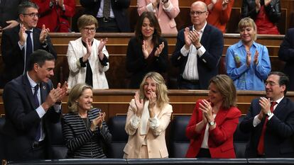 El jefe del Ejecutivo entiende que no procede “ponerse de perfil” ni ser “equidistante ni indiferente entre la legitimidad democrática con origen en las urnas y el vacío y el fraude constitucional”. En el Gobierno tienen la tesis de que “la abstención de Feijóo es miedosa” y está condicionada por sus futuros pactos con la ultraderecha de Vox tras las elecciones locales y autonómicas del 28 de mayo. Los dos socios de la coalición concluyen que han salido reforzados de esta disputa, aunque Unidas Podemos aprovechó para exigir más giro a la izquierda con hechos y leyes sociales. Vox sostiene que ha cubierto de sobra sus expectativas de retratar para mal a Sánchez y a Feijóo. El PP defiende que este espectáculo dado en el Congreso socava a Vox y le hará ganar algunos votantes.