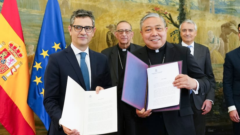 El acuerdo se ha hecho efectivo hoy mediante el correspondiente canje de notas entre el Gobierno y la nunciatura. Bolaños, tras un año de negociaciones “discretas e intensas”, lo ha cerrado en un encuentro con el nuncio en España, el arzobispo Bernardito Auza, y el presidente de la Conferencia Episcopal Española, Juan José Omella, en el palacio de Santa Cruz de Madrid, sede del Ministerio de Exteriores. El pacto se desarrolla “en la voluntad compartida entre el Gobierno de España y la Conferencia Episcopal Española de equiparar el régimen fiscal de la Iglesia católica con las entidades sin ánimo de lucro, conforme al principio de no privilegio y no discriminación”, según un comunicado conjunto del Ejecutivo y la Iglesia.