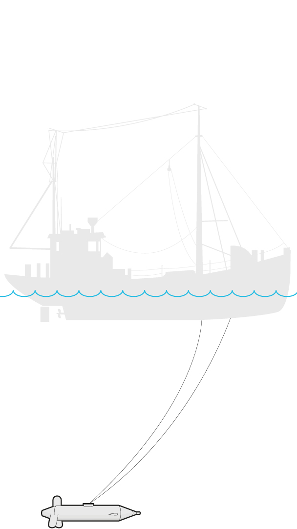 Bidón de transporte encubierto remolcado por una embarcación camuflada. Son muy difíciles de detectar, pues se transportan a gran profundidad.