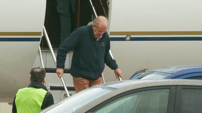 Juan Carlos I ha abandonado la casa de su amigo Pedro Campos, presidente del Real Club Náutico de Sanxenxo, en la que ha residido estos días, a las 17.17 de este domingo y se ha dirigido al aeropuerto de Peinador (Vigo), donde ha permanecido el jet privado durante el tiempo que ha durado su estancia en Galicia. Desde allí ha viajado a la capital vasca, con el objetivo de someterse a un reconocimiento médico, según han confirmado a EL PAÍS fuentes de su entorno.