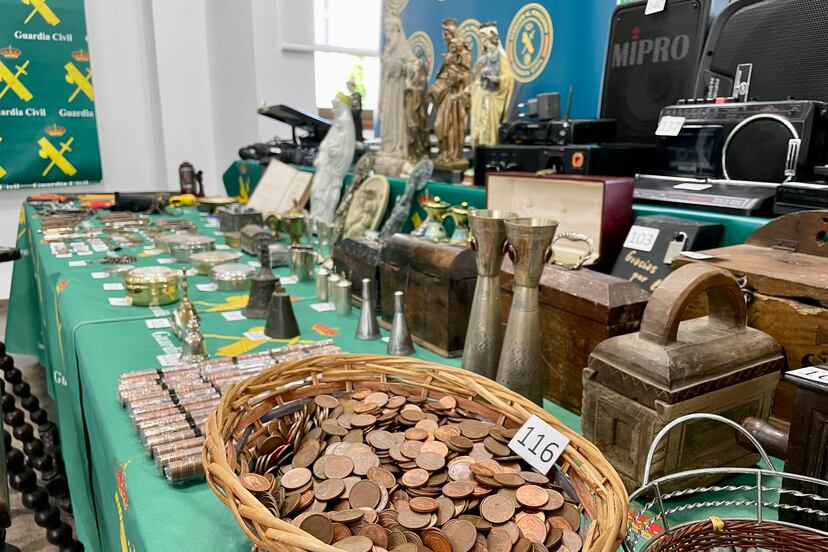 Los agentes detuvieron primero al hombre, tras un seguimiento, dentro de un coche cargado con las herramientas que supuestamente usaban en los robos. Luego detuvieron a la mujer en su domicilio de Villacarriedo, donde los guardias hallaron unos “140 efectos de índole eclesiástica, entre los que destacan imágenes, estuches con óleos, pequeños cofres con llaves de los sagrarios, relicarios porta oleas, llaves de templos, instrumental de sonido y dos bases de madera tallada para los féretros”. Y, sobre todo, se encontraron muchas monedas de níquel con distinto valor, parte en cestos, parte ya empaquetada para cambiarlas. El caso lo lleva el Juzgado de Instrucción número 2 de Medio Cudeyo (Cantabria).