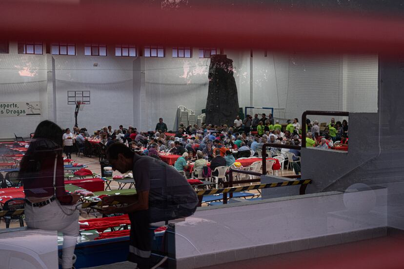 El pabellón deportivo se ha convertido en el refugio de los evacuados. “Yo he dormido regulín porque he pasado un poco de frío, pero la atención está siendo excelente”, comenta Lucio García. En el interior, se observan decenas de camas portátiles sobre las pistas de fútbol y baloncesto, también en las gradas, zona que los vecinos consideran “las suites” porque se escucha menos ruido. Además, hay un espacio dedicado a proporcionarles comida, de lo que se ha encargado el Ayuntamiento con la colaboración de Cruz Roja. Varios psicólogos y trabajadores sociales también se encuentran en el área para proporcionar asistencia a aquellos que lo necesiten.