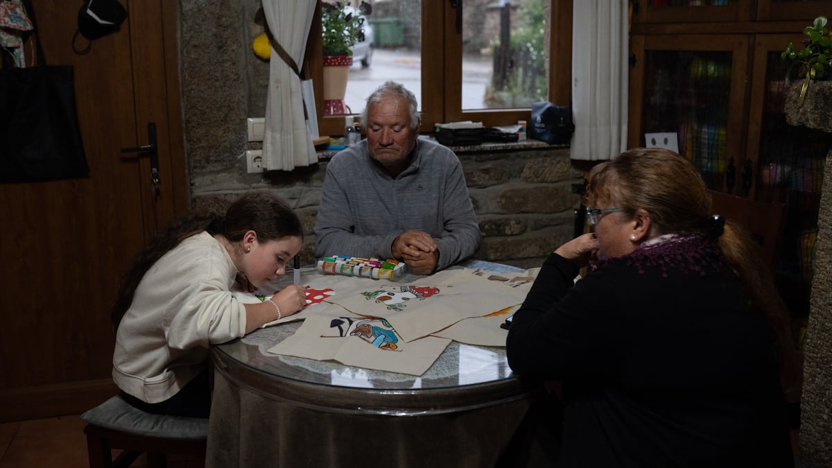 La lluvia que riega el pueblo estas semanas y que tan bien recibida hubiera sido hace un año forma charcos donde aún flota ceniza por si a alguien se le fuera a olvidar lo ocurrido. La madre de Elsa sí saca estómago para subir a la sierra todos los días y otear un horizonte negro. “Al principio me costó un huevo subir, la zona ya no es atractiva”, suspira la mujer ante la caída de cazadores, aficionados a la naturaleza o el turismo del lobo que oxigenaba las cuentas de las casas rurales o bares de la zona. Ella y su hermano Javi, tío de la niña, la embaucaron para subirla al coche y llevarla al monte “a traición”, como insiste la víctima. El abuelo reniega —”nos han hundido en la miseria”— mientras la nieta dibuja sobre unas bolsas de tela que el pasado sábado vendieron en un festival solidario que tuvo lugar en Villanueva de Valrojo, organizado por la plataforma La Culebra no se calla para recaudar fondos para la gestión y cuidado de la sierra. Se juntaron cientos de personas, hubo puestos de productos artesanos, bomberos dando charlas sobre el fuego o músicos locales bajo el lema “La sierra renace”.