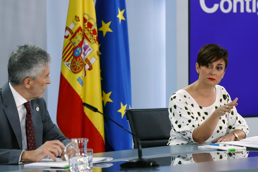 Vox ha sido el gran protagonista de la rueda de prensa posterior al Consejo de Ministros. Marlaska también ha criticado la gran lona que ha puesto la formación de extrema derecha en el centro de Madrid en la que tira a la basura los símbolos del feminismo o la bandera arcoíris del colectivo LGTBI. ¿Eso puede ser delito de odio?, le han preguntado. “Arrojar un símbolo a una papelera es todo menos generar convivencia. No me corresponde [decidir] si es delito de odio, pero no ayudan nada para respetar la diversidad. Pueden ayudar a otros discursos todavía más incendiarios”, ha rematado.
