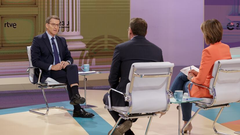 En el punto 216 de su programa electoral, el PP de Alberto Núñez Feijóo establece como promesa: “Promoveremos las actuaciones necesarias para asegurar la independencia y objetividad en los medios de comunicación públicos”. No precisa nada más. Este lunes, poco después de que Feijóo fuese pillado de nuevo en un renuncio en su entrevista en TVE ante la afirmación falsa de que los gobiernos del PP siempre habían revalorizado las pensiones de acuerdo al IPC, el vicesecretario Institucional de los populares, Esteban González Pons, escribió en Twitter: “Creo que @rtve va a perder las elecciones. Y espero que al día siguiente dimitan los dirigentes de ese partido, como se hace en todos los partidos cuando pierden las elecciones a las que se presentan. Mejor no ir. Yo ni la veo ni voy”. Asociaciones profesionales de periodistas como la FAPE o la APM denunciaron ese ataque a los periodistas por hacer su trabajo. En esa estrategia de cuestionar y relegar a instituciones públicas y órganos estatales como Correos, el CIS o el INE, el PP no se presentará esta noche en el debate a cuatro precisamente en RTVE en el que sí estarán el presidente, Pedro Sánchez, la líder de Sumar, Yolanda Díaz, y el de Vox, Santiago Abascal.