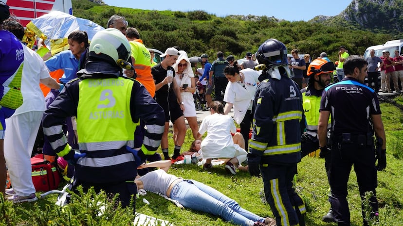 El día ha amanecido nublado este 31 de julio en los Picos de Europa. Desde primera hora de la mañana, miles de turistas hacían colas en los accesos al Santuario de Covadonga para subir en autobús y taxis a ver los famosos Lagos de Covadonga, una de las joyas paisajísticas de Asturias. Poco antes de las 12, un autobús de la compañía Alsa con 49 personas a bordo volcó en la carretera CO-4, poco después de pasar el Mirador de La Reina. El accidente ha provocado seis heridos de gravedad y seis moderadamente graves, con fracturas y dos casos de hemorragia interna, además de 37 de carácter leve. Los más graves fueron trasladados en un helicóptero, una UVI móvil y varias ambulancias hasta el Hospital de Arriondas, en el Oriente asturiano.