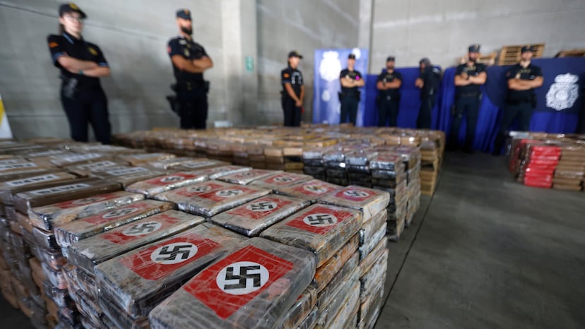 Las miles de pastillas de cocaína, presentadas en montones, estaban marcadas con nombres como “Raw”, “Ok”, “Hitler”, esvásticas y marcas de ropa o de coches de lujo. En total, más de 30 logotipos que los investigadores asocian a las mafias que se asociaron para comprar la mercancía. “Eso supone que había varias organizaciones que invierten en la misma operación, realizan esa inversión parcial y se organizan para hacer un envío”, ha apuntado Alberto Morales, inspector jefe de la Brigada Central de Estupefacientes (Udyco) de la Policía Nacional. La pauta no es nueva y tiene un objetivo claro, resumido por el inspector jefe: “Reducen el riesgo invirtiendo en distintas rutas”.