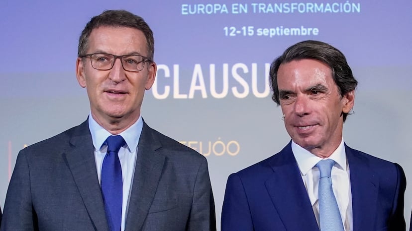 Feijóo, que habló el último, no se permitió desarrollar sus ideas sobre Europa y sus amenazas, sino que entró de lleno en el panorama de “la liga política” española, llena de acusaciones y trincheras en estos días previos a su sesión de investidura. Mostró su apoyo y el de todo el PP a Aznar por “los disparatados ataques” que ha recibido de varios ministros y en concreto, citó los de la portavoz, Isabel Rodríguez, que le parecieron “una muestra más de la deriva del Gobierno en funciones” y que entiende que está “produciendo un asalto institucional a todas las esferas políticas de España”. Feijóo bromeó, y el auditorio aplaudió la chanza, diciendo que si el expresidente popular fuera de verdad un “golpista”, el Ejecutivo de Sánchez “lo indultaría y luego le pediría que le votase en su investidura”. A continuación pidió la dimisión de la ministra en funciones.