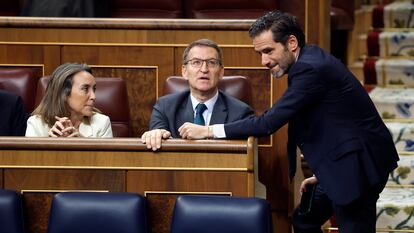 La elevación del tono de los populares no se constató solo en el discurso de Sémper. Nada más aprobarse la reforma del reglamento, el presidente del PP, Alberto Núñez Feijóo, compareció ante la prensa para deplorar los nuevos usos plurilingüísticos de la Cámara, que llegó a calificar de “karaoke”, y anunciar que estudiará recurrir la medida ante el Tribunal Constitucional. Feijóo insistió en su denuncia de que el catalán, el gallego y el euskera se han empezado a permitir ya esta misma semana antes de que se reformase el reglamento para ello: “Se ha aplicado una ley antes de aprobarla, eso no sucede en un régimen democrático, será en otro tipo de régimen”. Al vincular las nuevas normas del Congreso con la posible concesión de una amnistía a los políticos catalanes con causas pendientes por el procés, el líder popular insistió en poner en duda el carácter democrático de sus rivales. Acusó a Pedro Sánchez de perpetrar un “fraude electoral agravado y reincidente” si accede a las medidas de gracia que le exigen los independentistas y sentenció: “Estamos ante un punto de inflexión en la historia democrática de nuestro país”.
