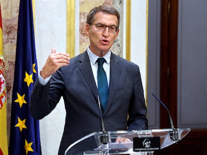 Las expectativas que el PP había generado en lograr abrir una brecha en el PSOE antes de la investidura de Alberto Núñez Feijóo han sido infructuosas. El candidato popular ha retomado este jueves la ronda de contactos con presidentes autonómicos que anunció hace un mes tras recibir el encargo de Felipe VI para ser investido en un intento abocado al fracaso: Feijóo no ha logrado ampliar los 172 escaños (PP, Vox, UPN y Coalición Canaria) con los que acude al debate de investidura en las cuatro semanas transcurridas. El aspirante del PP ha llamado esta tarde a Emiliano García-Page, el presidente de Castilla-La Mancha y principal dirigente socialista en activo más crítico con la posible concesión de una amnistía a los encausados del procés. García-Page ha atendido por cortesía al líder popular, dejando claro por adelantado que solo hablarían de cuestiones de interés para la comunidad autónoma como infraestructuras, política de agua o la Política Agraria Común (PAC). “No somos interlocutores válidos ni para hablar, ni para negociar nada sobre la investidura. Eso le compete al secretario general del partido, que es Pedro Sánchez”, habían advertido horas en el entorno de García-Page antes de producirse la llamada. Y así ha ocurrido. No ha habido sorpresas. “No hubiéramos aceptado otra cosa, los límites estaban muy claros”, han señalado las mismas fuentes.