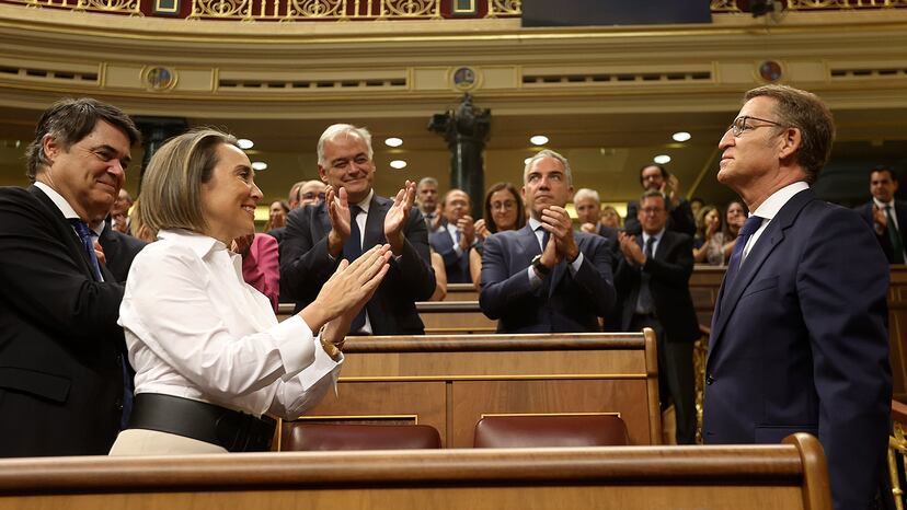 Feijóo utilizó también su discurso, de casi dos horas, para reivindicar su liderazgo al frente del PP, por si acaso sufre tensiones después de no haber logrado una victoria suficiente en las urnas. “Haber ganado las elecciones es la primera razón por la que hoy estoy aquí”, subrayó, después de recordar que tiene 16 escaños más que el PSOE, cuenta con mayoría absoluta en el Senado y reúne más diputados (137) que los que nunca ha logrado Sánchez. De nada le bastan todas esas cifras para evitar que su investidura sea un intento fallido. Salvo una sorpresa mayúscula que nadie espera, el líder del PP saldrá del Congreso cambiando el traje de ganador de las elecciones por el del candidato que no logró la confianza del Parlamento.